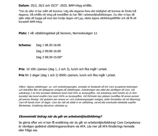 Vi erbjuder våra tjänster inom områdena arbetsmiljö, utbildning, hälsa, rehabilitering, HR och organisation.